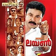Lion is a 2006 Indian Malayalam language political thriller film written by Udaykrishna-Sibi K. Thomas and directed by Joshiy.[2][3] The film stars Dileep,[4] Kalasala Babu, Kavya Madhavan and Vijayaraghavan alongside a supporting cast that include Jagathy Sreekumar, Innocent, Sai Kumar, Shammi Thilakan, Riyaz Khan and Karthika. The film was produced by Noushad and distributed by Shan Entertainment. The film was a blockbuster at the box office.[5] It was remade in Tamil as Nam Naadu[6][7][8] and in Telugu as Evadaithe Nakenti.[9][10]