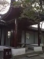 Built during the 1917 renovation as an entry into the courtyard of the Nine Lion Peak rockery. It is a three bay hall with a portico on the north facade and a square pavilion attached to the south facade. |
