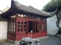 A three bay hall used by the Bei family as an ancestral temple. A tablet is inscribed with praise for Ni Zan's Picture Scroll of Lion Grove Garden. The inscription, by Gu Tinglong, reads, "elegant aroma of clouds and woods". |
