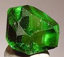 A 2.45 carat tsavorite crystal from the Merelani Hills of Tanzania. This example is less than 1% the size of the Lion of Merelani.