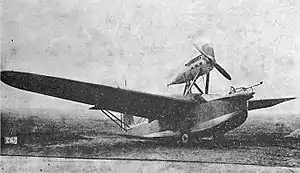 It was an amphibious aircraft; its landing gear had two retractable mainwheels and a small leaf spring tailskid. Two small, streamlined structures, each close to the fuselage side a little above the waterline and mounted on a pair of parallel struts from the forward wing spar, carried the undercarriage legs, a vertical shock absorber and a trailing arm meeting at the wheel axle, which could be rotated together to a horizontal position for touchdowns on water. The undercarriage track was 2.15 m (7 ft 1 in). Fitting the wheeled undercarriage increased the weight by 155 kg (342 lb) and reduced maximum speeds by about 5 km/h (3 mph; 3 kn).[1]