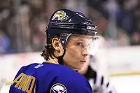 Denis Hamel, shown here as a member of the AHL's Binghamton Senators, spent parts of four seasons with the Sabres.[10]