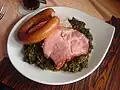 Gruenkohlgericht Side dish Cooked kale usually served with potatoes and Kasseler or other foods.