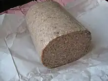 Möpkenbrot Snack A kind of blood sausage that contains rye bread, pig-blood, milk, eggs, fat, salt, and pepper.