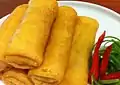 Java | A savoury snack made of slices of banana with melted chocolate or chocolate syrup, wrapped inside thin crepe-like pastry skin and being deep fried. |