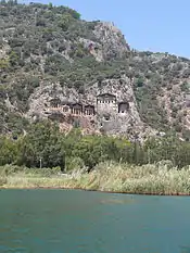 This article contains a list of Lycian place names that have survived from ancient Lycia in Anatolia. Names of settlements and geomorphic features are known from ancient literary sources. Ptolemy's Geography lists places in Asia Minor[1] and specifically Lycia.[2] Strabo's Geography has a section on Lycia as well,[3] as does Pliny's Natural History.[4] Stephanus of Byzantium includes a large number of Lycian places in Ethnica.[5] Hierocles in Synecdemus lists the cities in the eparchy of Lycia.[6] William Martin Leake's Journal of his own trips through Anatolia, as well as of those of many other travellers, with analyses of sources, mainly Ptolemy, is still a valuable source of information on the locations and appearances of the Lycian sites.[7] In addition, numerous inscriptions in the Lycian language state some place names in their Lycian forms.[8] The topographical information comes from the Aydın thesis, and was developed from Turkish military maps.[9]