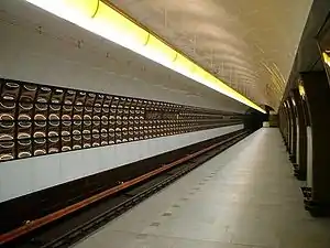 Nusle | Vyšehrad fortress, castle and cemetery | C | May 9, 1974 | formerly Gottwaldova, after Klement Gottwald Side platforms partially in a tunnel, partially on a viaduct, due to being built through a cliff face running perpendicular to the line. |