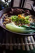 Beef noodle soup Noodle dish Chinese noodle soup made of stewed or red braised beef, beef broth and vegetables.