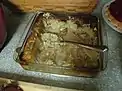 Pig candy is a dessert made from thick strips of smoked bacon and pecans coated them in caramel or another type of sugar.[35][36] | |