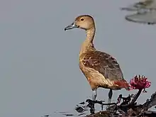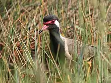 The jacanas are a group of tropical waders in the family Jacanidae. They are found throughout the tropics. They are identifiable by their huge feet and claws which enable them to walk on floating vegetation in the shallow lakes that are their preferred habitat.