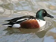 Anatidae includes the ducks and most duck-like waterfowl, such as geese and swans. These birds are adapted to an aquatic existence with webbed feet, flattened bills, and feathers that are excellent at shedding water due to an oily coating.