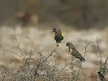 The indigobirds are finch-like species which usually have black or indigo predominating in their plumage. All are brood parasites which lay their eggs in the nests of estrildid finches.
