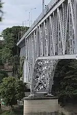 ![]() | 30 | Monumental Bridge | 150 m (490 ft) | 540 m (1,770 ft) | Truss Steel Railroad bridge 150+5x76 | 1961 | Puerto Berrío 6°28′56.4″N 74°24′01.2″W / 6.482333°N 74.400333°W | Antioquia Santander | [41] [42] | |