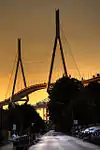 ![]() | Köhlbrandbrücke 53°31′18″N 9°56′18″E / 53.52167°N 9.93833°E | 1974 | 3,940 m (12,930 ft) | Waltershof, Steinwerder | designed by Paul Boué, Egon Jux and Hans Wittfoht; was the world's longest cable-stayed bridge from 1974 to 1991 | |