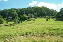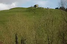 The castle has a motte 40 m wide, with no evidence of a bailey.[41] It was probably intended to operate in conjunction with the nearby castle at Newington Bagpath.[42]