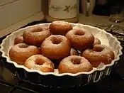 | Urrädla | Germany | A fried dough made in Upper Franconia and served sprinkled with powdered sugar. It is a specialty of Franconian Switzerland, in the area around Forchheim. Also called Braada (breite) Küchla.[12] | |