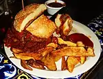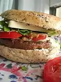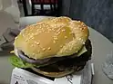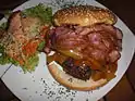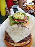 This is a list of notable hamburgers. A hamburger consists of a cooked patty of ground meat usually placed between two slices of a bread roll. Hamburgers are often served with lettuce, bacon, tomato, onion, pickles, cheese, and condiments such as mustard, mayonnaise, ketchup, and relish.[1] There are many types of regional hamburgers with significant variations.