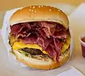 Pastrami burgerPopularized by Crown Burgers of Utah in 1978.A burger with cheese and thin-sliced pastrami on top,[10] commonly served at Greek burger restaurants in Utah.[33]