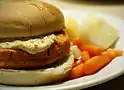 Salmon burgerUnited StatesFishcake made mostly from salmon in the style of a hamburger. Salmon burgers are especially common in Alaska where they are routinely offered as an alternative to beef hamburgers.[37]