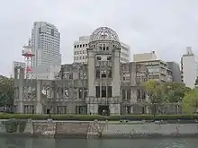 the A-Bomb dome in Hiroshima, near to the ground zero but the construction survived.