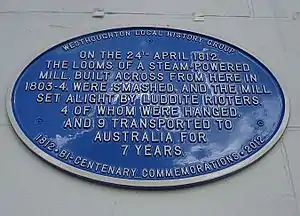 - ↑ David Dixon. "Sharples Mill". St Mark's School, Bolton site. Retrieved 8 November 2009.
