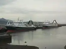 American Dynasty (right) and American Triumph (left), two of American Seafoods' factory trawlers docked at Bellingham Cold Storage in Bellingham, Washington