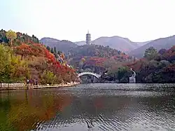 The "Nine Solitary Hills" (Chinese: 座孤; pinyin: Jiŭ Zuò Shān) are a group of small solitary hills in the Yellow River valley within and to the north of Jinan City known for their scenic beauty: