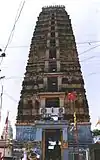 The gopuram's origins can be traced back to early structures built under the south Indian kings of the vijaynagara, Pallava and Chola dynasties. By the twelfth century, during the Pandya dynasty, these gateways became a dominant feature of a temple's outer appearance, eventually overshadowing the inner sanctuary which became obscured from view by the gopuram's colossal size.[3] It also dominated the inner sanctum in amount of ornamentation. Often a shrine has more than one gopuram.[4]