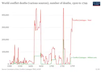 - ↑ "Deaths in conflicts by source". Our World in Data. Retrieved 2023-04-27.