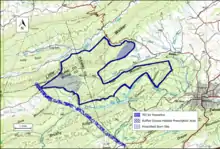 The boundary of the wildland as determined by the Wilderness Society is shown in the adjacent map.[1] Additional roads and trails are given on National Geographic Maps 787 (Blacksburg, New River Valley, Trails Illustrated Hiking Maps, 787).[2] A great variety of information, including topographic maps, aerial views, satellite data and weather information, is obtained by selecting the link with the wild land's coordinates in the upper right of this page.
