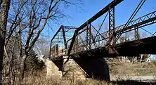 ![]() Side view of the Little Walnut River Pratt Truss Bridge | |