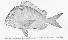 The littlehead porgy (Calamus proridens) is a species of marine ray-finned fish belonging to the family Sparidae, the seabreams and porgies. It is only found in the western portion of the tropical Atlantic Ocean, where they are often caught and used as food.[2][3]