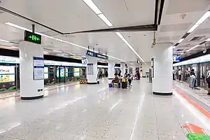 Liuliqiao station[1] (simplified Chinese: 六里桥站; traditional Chinese: 六里橋站; pinyin: Liùlǐqiáo Zhàn) is an interchange station on Line 9 and Line 10 of the Beijing Subway.[2] It is located along Guang'an Road to the southwest of Liuliqiao, the intersection between the 3rd Ring Road and the northern terminus of the G4 Beijing–Hong Kong and Macau Expressway.