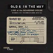 Live at the Boarding House is an album recorded by the 1973–1974 bluegrass group, Old & In the Way. It is a complete recording of a concert held October 08, 1973, at the Boarding House in San Francisco. It was released in 2008.[2]