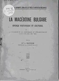 Lyubomir Miletich (Bulgarian: Любомир Милетич) (14 January 1863 – 1 June 1937) was a leading Bulgarian linguist, ethnographer, dialectologist and historian, as well as the chairman of the Bulgarian Academy of Sciences from 1926 to his death.