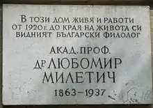 Commemorative plaque attached to the house where Miletich lived in Sofia