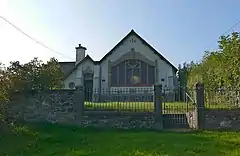 The area of the parish is today largely mountain pasture. As with many such communities, its population has fallen over the years: in 1833 it had 164 inhabitants.[3] There are a number of rare late-medieval cruck-framed buildings.[4] There is also a Calvinistic Methodist chapel, Hermon, rebuilt in 1906 in a "curious" Art Nouveau-influenced style.[5]