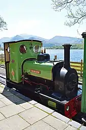 The Llanberis Lake Railway (Welsh: Rheilffordd Llyn Padarn) is a 1 ft 11+12 in (597 mm) narrow gauge heritage railway that runs for 2.5 miles (4 km) along the northern shore of Llyn Padarn in north Wales in the Snowdonia National Park. The starting point is the village of Llanberis at the eastern end of the lake (53°07′03″N 4°07′09″W / 53.1175°N 4.1193°W / 53.1175; -4.1193 (Llanberis station)), with the western terminus at Pen Llyn in the Padarn Country Park (53°08′13″N 4°08′58″W / 53.1370°N 4.1495°W / 53.1370; -4.1495 (Penllyn station)).[2] The return journey takes around 60 minutes.