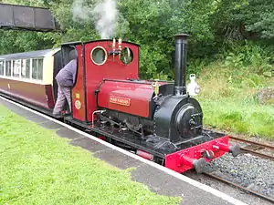 Diana Kerr Stuart 0-4-0T 1158 1917 First ran on the Kerry Tramway, then moved to the Oakeley Quarry, then the Pen-yr-Orsedd Quarry. Stored in derelict condition on the Llanberis Lake Railway in the 1970s. Moved to the Brecon Mountain Railway in 1972.[10] Restored to working condition in 2015, and in 2018 is based at the Amerton Railway