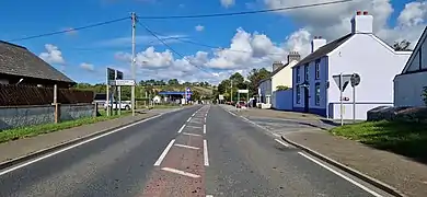 The village has a petrol station with a convenience store and post office situated on the northern side of the A487, an animal feed store, a small home furnishing store, a farm shop and restaurant as well as a small chapel with cemetery, a village hall and a small caravan and camping park as well as a second camping site. There is also a nearby karting track.