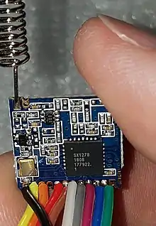 LoRa (from "long range") is a physical proprietary radio communication technique.[1] It is based on spread spectrum modulation techniques derived from chirp spread spectrum (CSS) technology.[2] It was developed by Cycleo, a company of Grenoble, France, and patented in 2014 (patent 9647718-B2. Cycleo was later acquired by Semtech.[3][4]