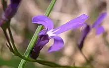 Lobelia dentata is a herb found in eastern Australia. The habitat is eucalyptus woodland and forest, often on sandy soils. It is an uncommon species, but may be locally abundant after bushfires.