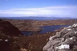 Loch a' Ghille Ghobaich (loch of the meddlesome or gossiping ghillie) is a large irregular shaped freshwater hill loch,[2] situated on a north-south orientation, that lies about a half-mile north of the west-end of Loch Morar and is south-by-southeast of Mallaig in the Lochaber district of Scotland.[1] The loch is also occasionally known as Loch a' Ghille Ghobhaich.