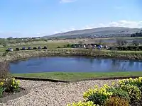 Loch o' th' Lowes, in New Cumnock Parish, situated at the foot of Lowesmuir. A Middle English derivation of the name is suggested to be law, meaning 'low' or alternatively the name Lowes is derived from the personal name Lothus, brother of Urien of Rheged.[4] The 'Loch of Flames' has also been suggested.[1] Another derivation may be a duplication, the word itself being a form of 'loch'.[5]