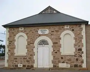 The Government Town of Lochiel was surveyed in 1869, closely following the proclamation of the cadastral Hundred of Cameron.[4] The District Councils Act 1887 declared the township and the rest of the Hundred of Cameron a part of the District Council of Port Wakefield. The following year, lobbying by residents resulted in the Hundred of Cameron being moved from the control of Wakefield council into the jurisdiction of the District Council of Snowtown, cementing a close relationship between Lochiel and Snowtown rather than the more distant Port Wakefield.