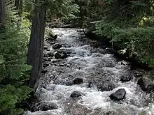 The Lochsa River is in the northwestern United States, in the mountains of north central Idaho. It is one of two primary tributaries (with the Selway to the south) of the Middle Fork of the Clearwater River in the Clearwater National Forest. Lochsa is a Nez Perce word meaning rough water.[6][7] The Salish name is Ep Smɫí, "It Has Salmon."[8]