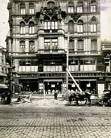 The "Loeser & Wolff" building, which juts out over the Landwehr Canal like the prow of a ship, was nicknamed the "Loeser Castle" by the Berlin vernacular at the time; today it is neutrally called the "Loeser & Wolff House".[7]