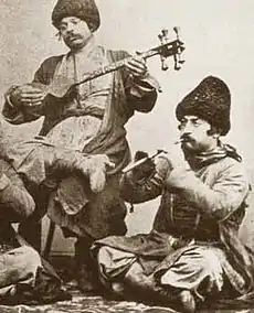 The Lom people (Turkish: Lomlar), also known by non-Loms as Bosha or Posha (Turkish: Poşa; Armenian: Բոշա; Georgian: ბოშა, romanized: bosha; Russian: Боша) or as Armenian Romani (Russian: армянские цыгане; Armenian: հայ գնչուներ) or Caucasian Romani[1] (Russian: кавказские цыгане), are an ethnic group originating from the Indian subcontinent.[2] Their Lomavren language is a mixed language, combining an Indo-Aryan substrate with Armenian.