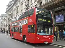 On 24 January 2004, route 94 was converted to one man operation with the AEC Routemasters replaced by Alexander ALX400 bodied Dennis Trident 2s.[2] Twenty Alexander Dennis Enviro400Hs entered service on the route in late 2010.[4]