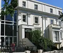 With a recession in Ireland in the mid-20th century, and Britain in need of workers in a number of industries and services, tens of thousands of Irish people migrated to Britain. The centre itself opened in 1955,[3] providing accommodation (serving as a hostel in its early years), employment support and a starting point to those arriving. The Camden Square location was chosen for its proximity to Euston Station, where Irish people disembarked their trains from Holyhead Ferry Port. The London Irish Centre also became a hub of social activity, with dinners, dances and social functions. Throughout history, the Centre has become an iconic landmark for the Irish in London, hosting visits from Presidents of Ireland Mary Robinson (in 1993) and Michael D. Higgins (in 2012).[3] As of 2023, the London Irish Centre's patrons include Ed Sheeran and Dermot O'Leary.